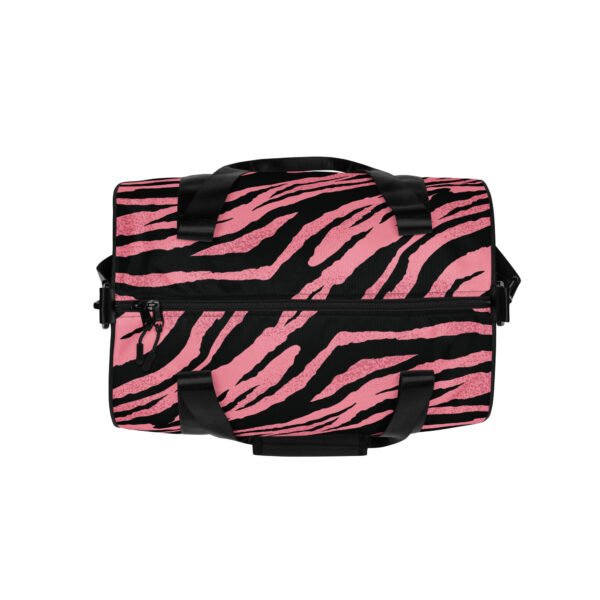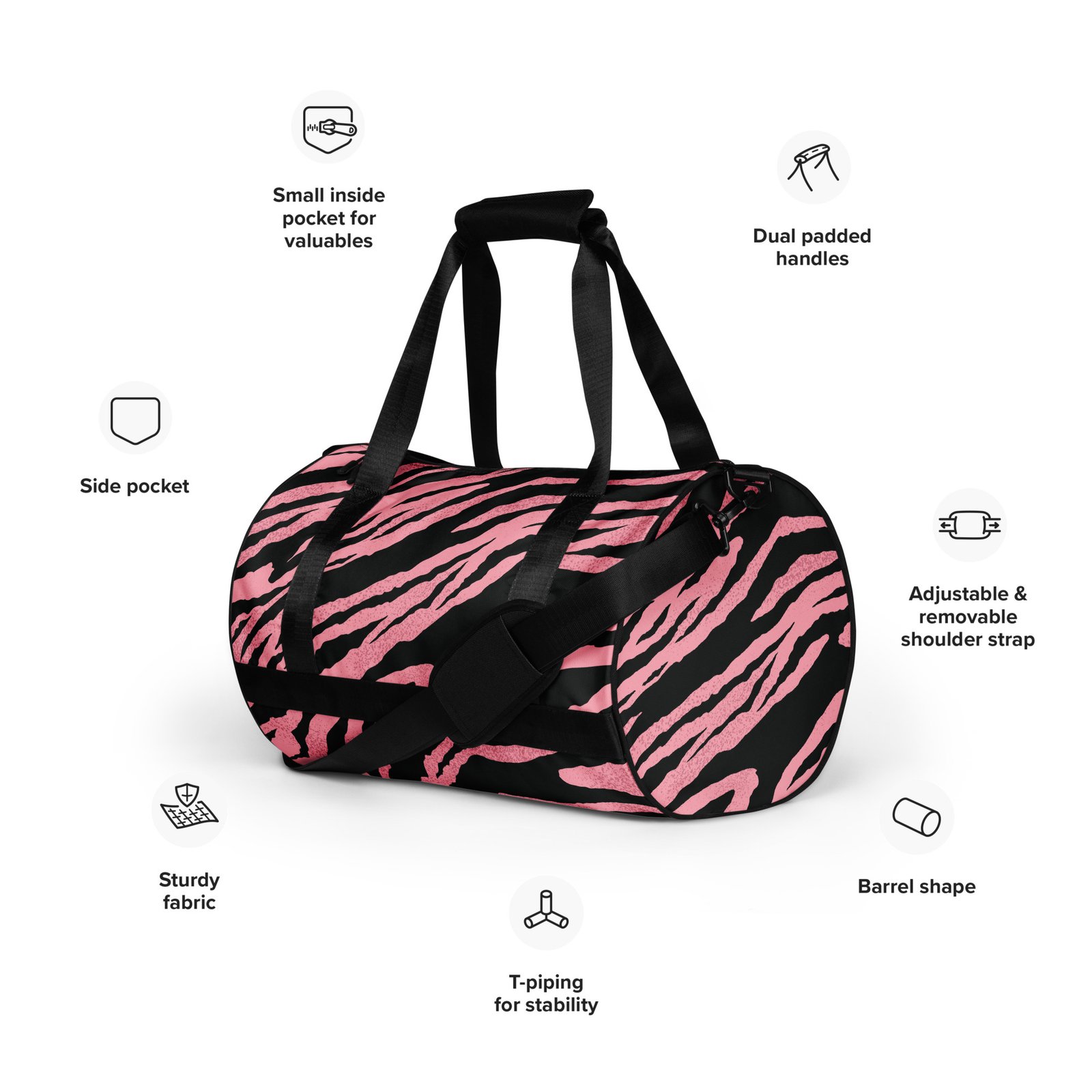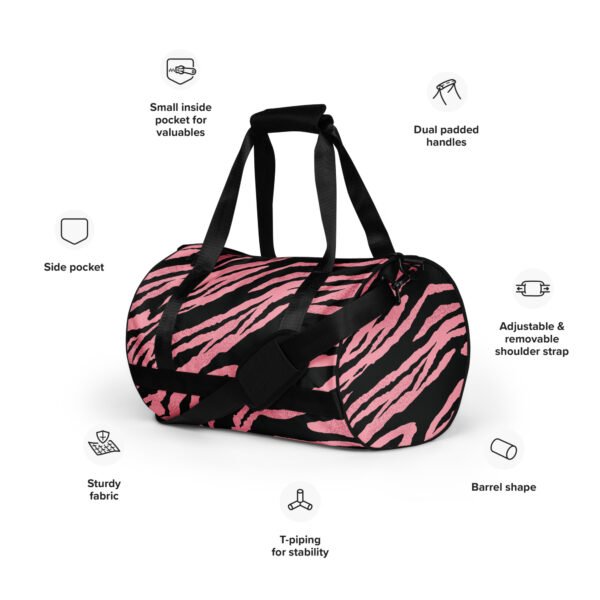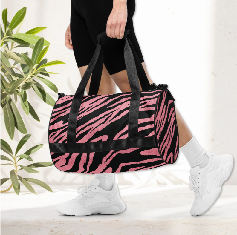 Ready to get your fitness on? Add some punch to pumping iron with this all-over print gym bag. Made from 100% polyester and sturdy, water-resistant fabric, this bag is fun meets function. And it’s got pockets!